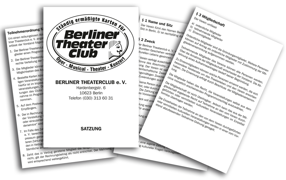 Der BERLINER THEATERCLUB e.V. ist ein gemeinnütziger Verein und vermittelt seinen Mitgliedern seit über 50 Jahren Karten für kulturelle Veranstaltungen wie Oper, Operette, Theater, Ballett, Musical, Show, Varieté, Konzerte u.v.a.